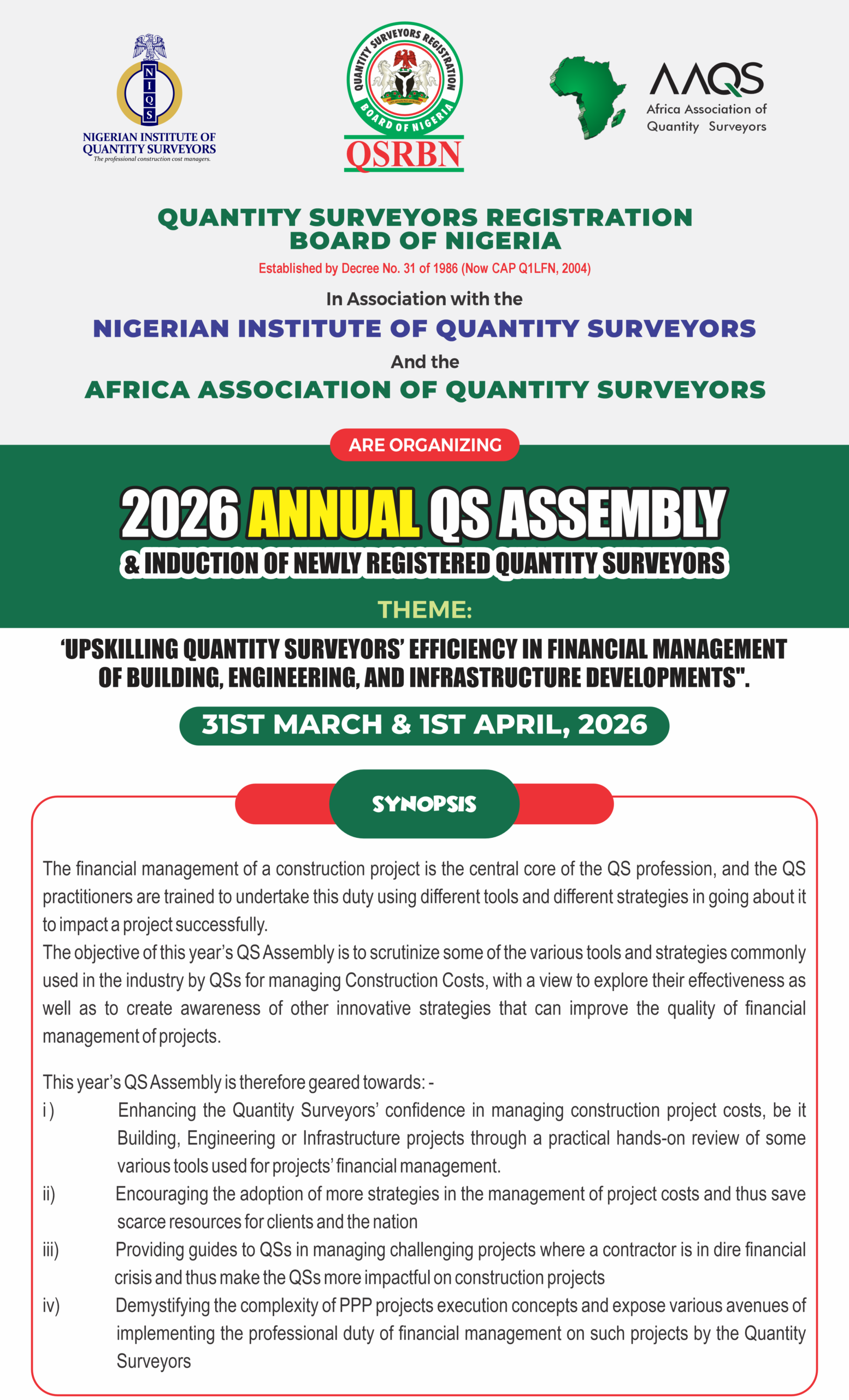 QSRBN regulates and controls the practice of the quantity surveying profession in all its aspects and ramifications in Nigeria.