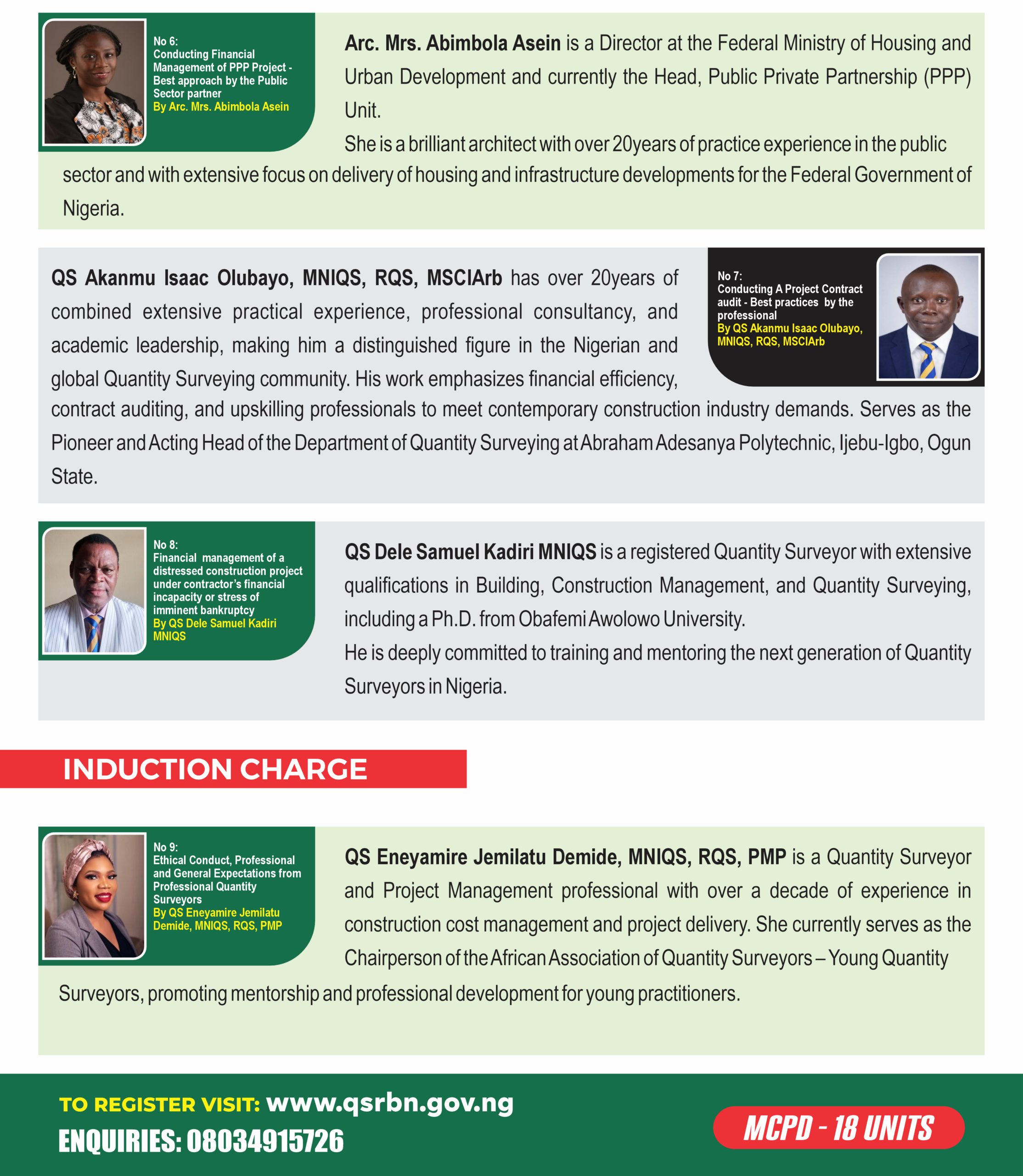 QSRBN induct newly registered quantity surveyors every year during it annual assembly