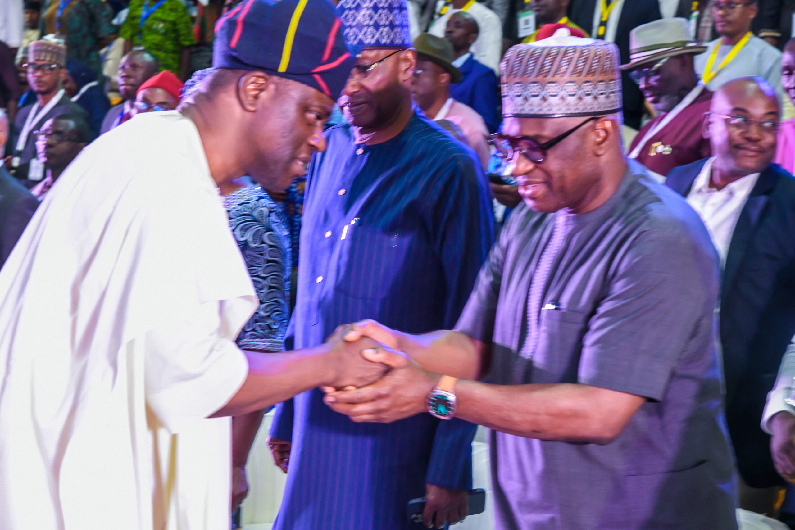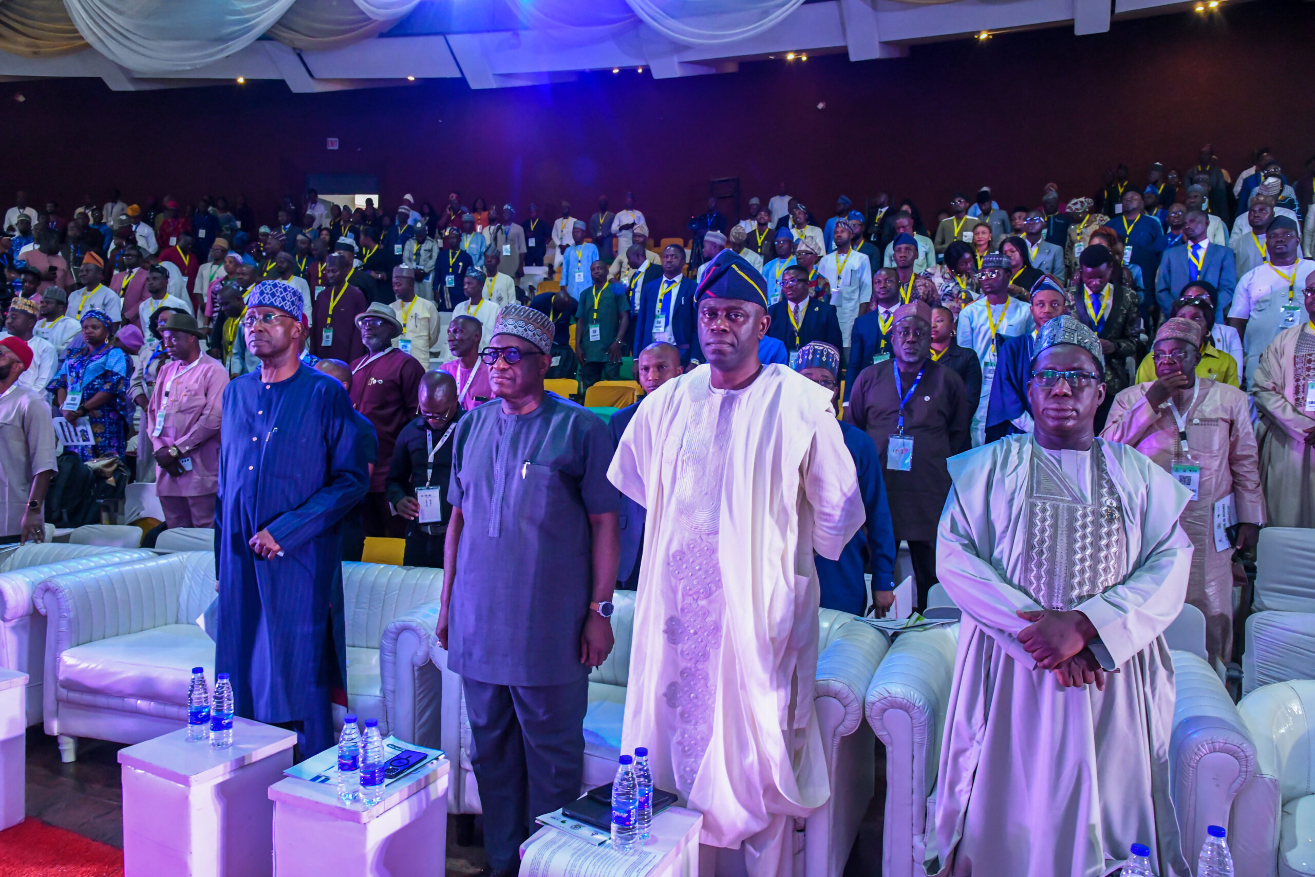 Minister of Housing & Urban Development, Arc. Ahmed Musa Dangiwa (Middle);the President of the Board, QS. Obafemi O. Onashile (Left) and the President of Nigerian Institute of Quantity Surveyors NIQS