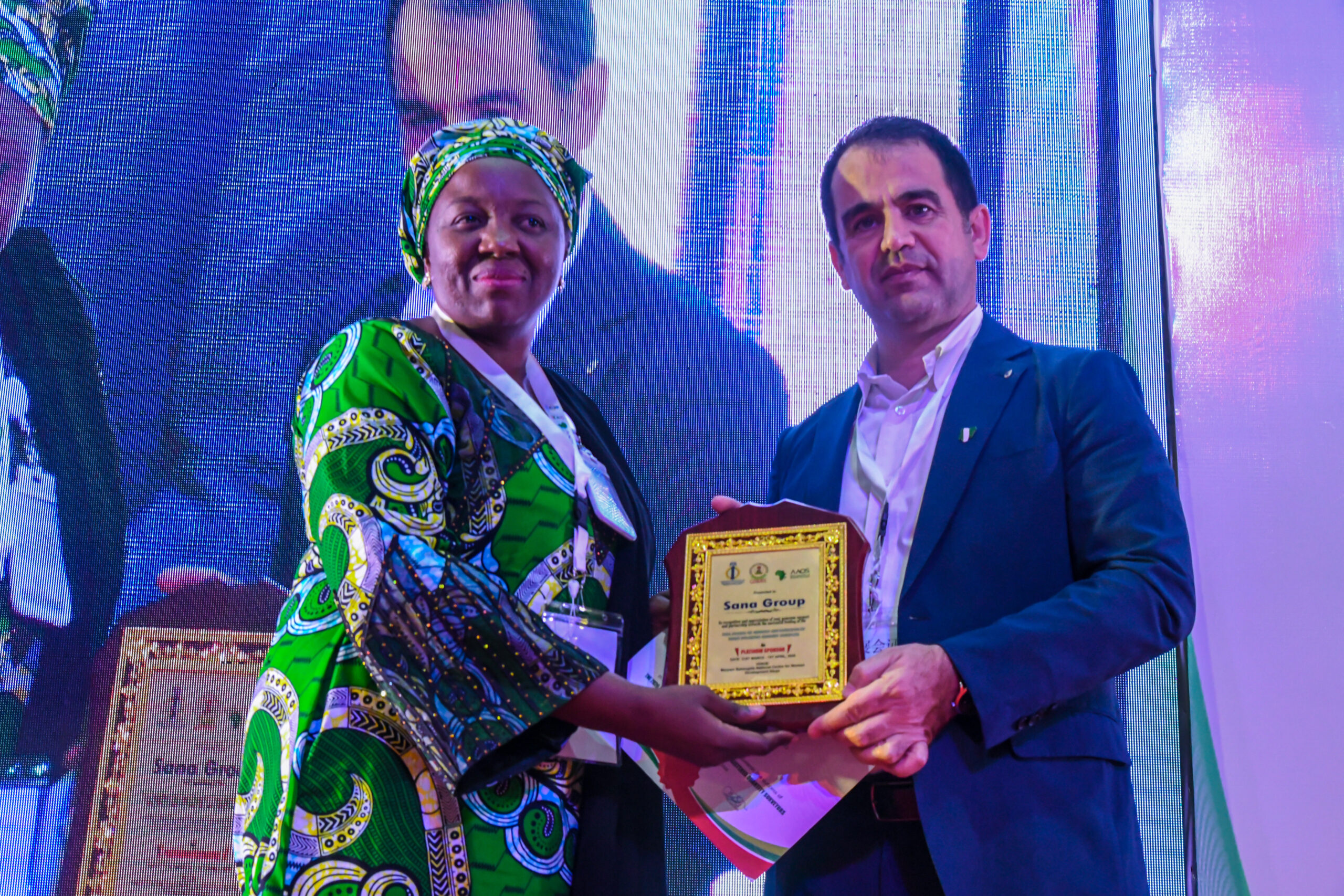 QSRBN Registrar giving a plaque award to SANA Group